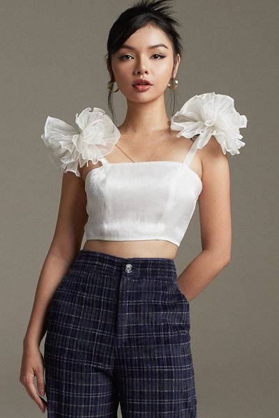 Tên sản phẩm: Áo croptop ôm voan dây phối bèo vai.