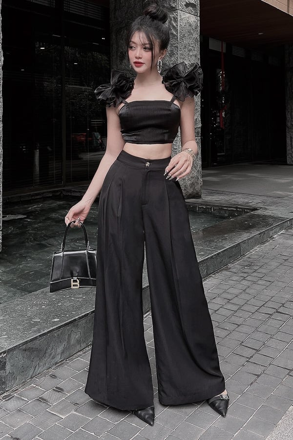 Form: Áo 2 dây voan phối bèo vai.
