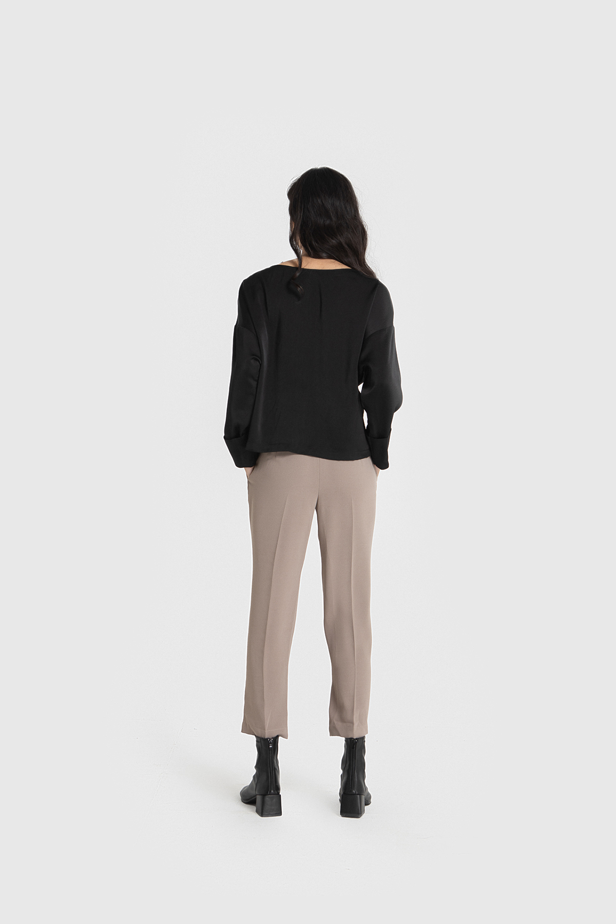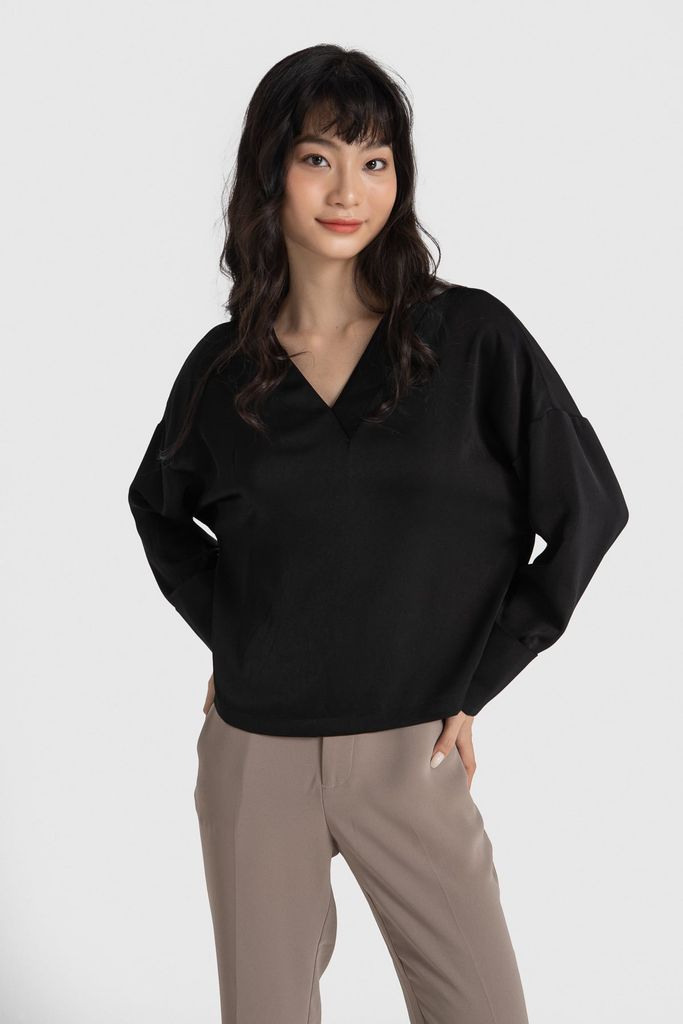 Tên sản phẩm: Áo suông lụa nhung đen cổ V kiểu.