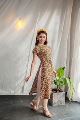 Tên sản phẩm: Áo dài ôm lụa in hoa nhí nền đen tay cánh tiên