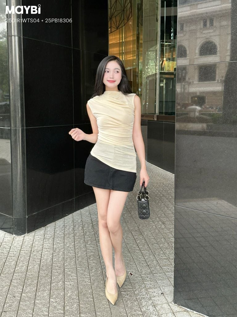 Mix cùng quần jeans hoặc chân váy ngắn: trẻ trung, năng động nhưng vẫn cuốn hút.