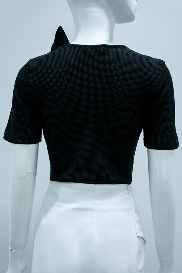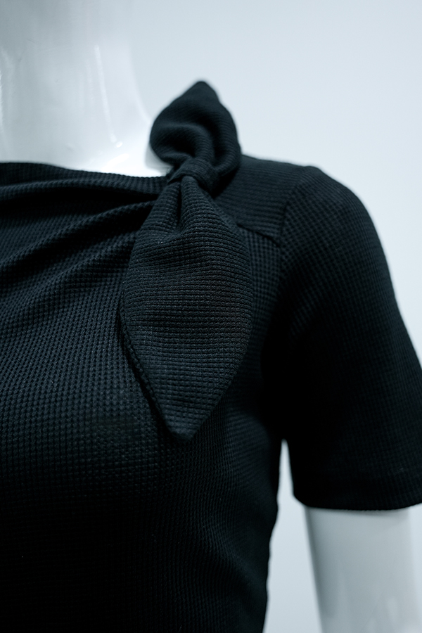 Tên sản phẩm: Áo ôm thun waffle cổ xéo đính nơ.