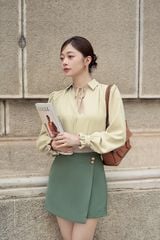 Tên sản phẩm: Áo sơ mi form rộng tằm nhung tay phồng.