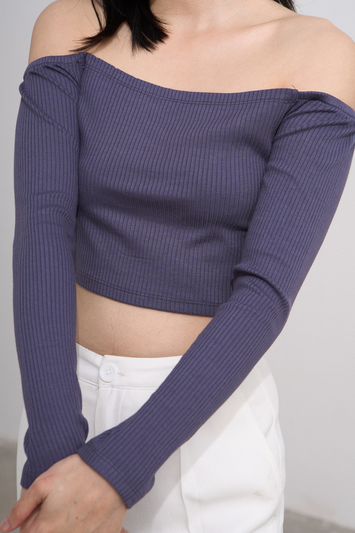 Tên sản phẩm: Áo croptop ôm thun không vai tay dài.