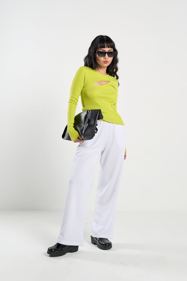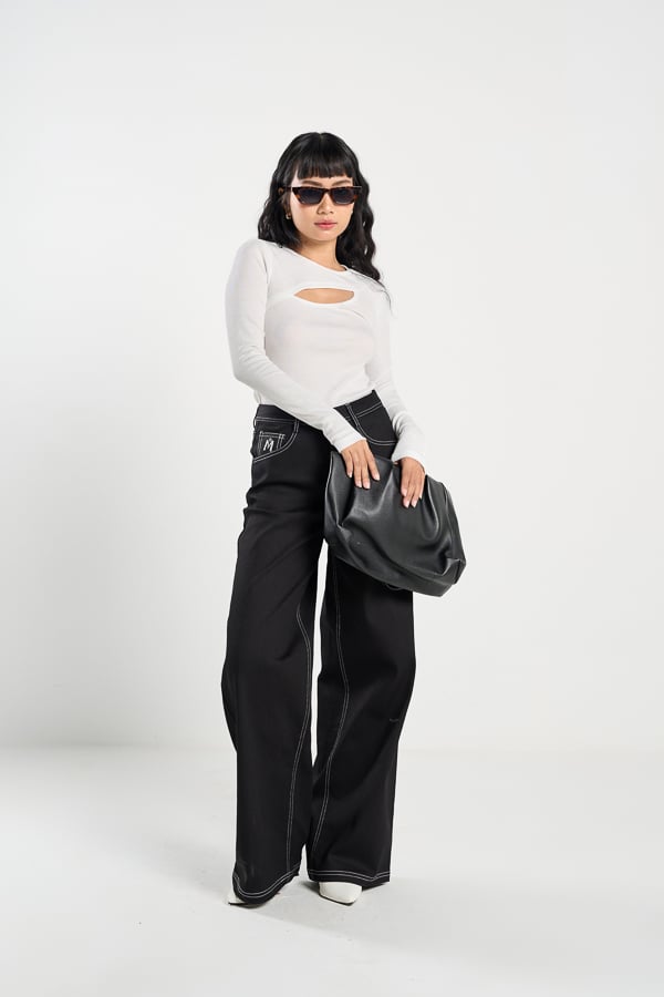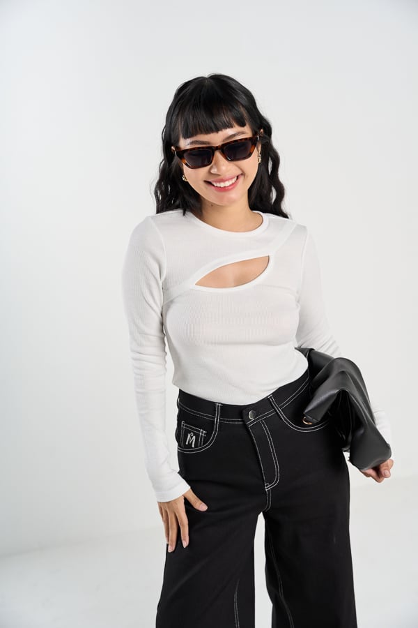 Form: Áo thun ôm, cutout phần trên ngực thân trước, tay dày ôm.