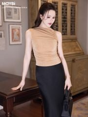 Form: Áo thun form ôm, không tay, nhún kiểu, vai lệch.
