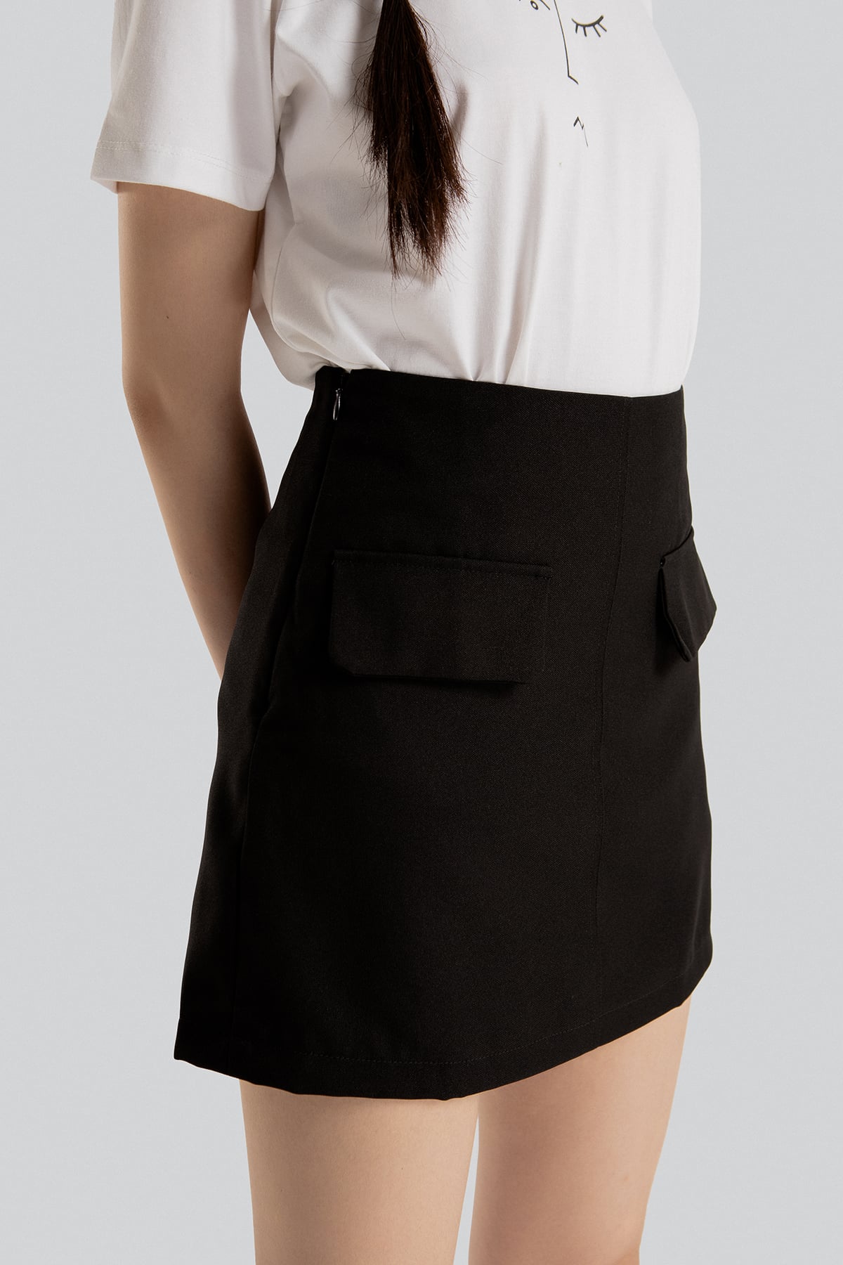 Tên sản phẩm: Chân váy A đen phối nắp túi