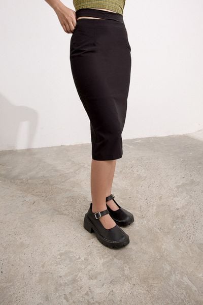 Tên sản phẩm: Chân váy lửng ôm lụa đen phối dây nơ