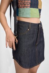 Tên sản phẩm: Chân váy mini ôm jean xanh đậm phối lai cong.