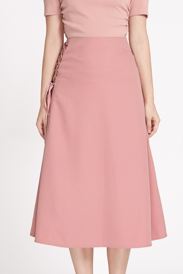 Tên sản phẩm: Chân váy midi xòe phối đan dây.