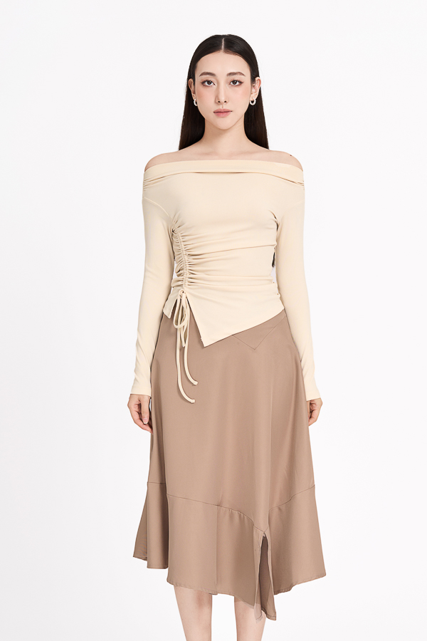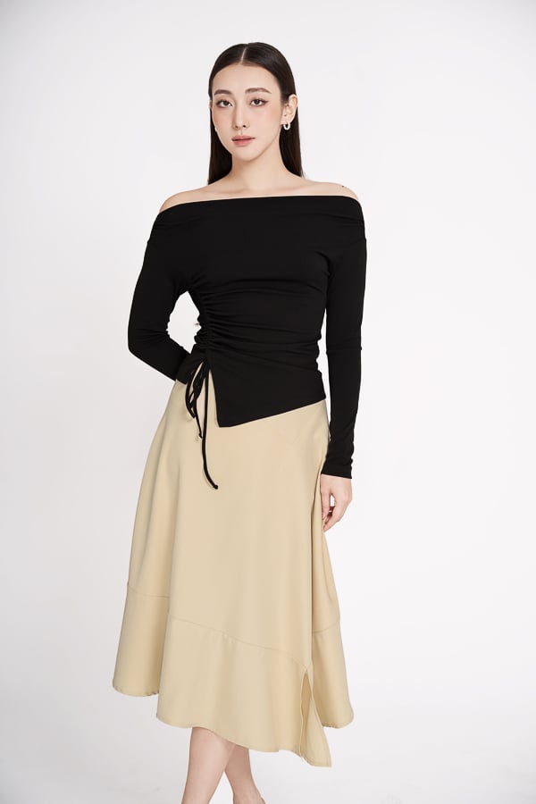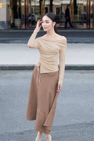 Tên sản phẩm: Chân váy midi xòe rã kiểu.