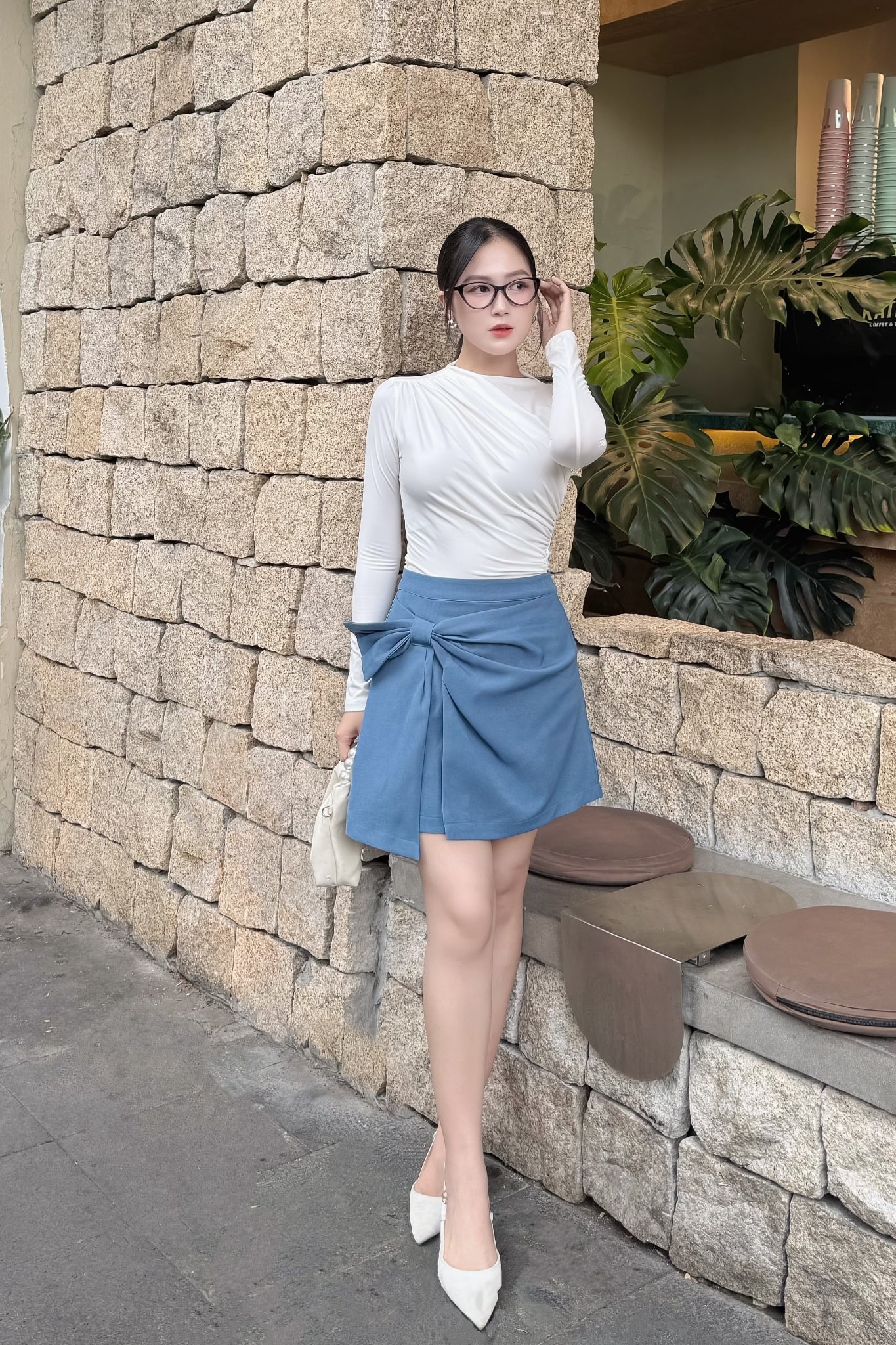 Chân váy mini form A đắp tà lạ mắt, giúp tôn lên vẻ nữ tính, gợi cảm và duyên dáng