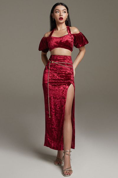 Tên sản phẩm: Chân váy ôm nhung xẻ tà.