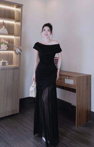 Tên sản phầm: Đầm lệch vai nhún kiểu dáng maxi