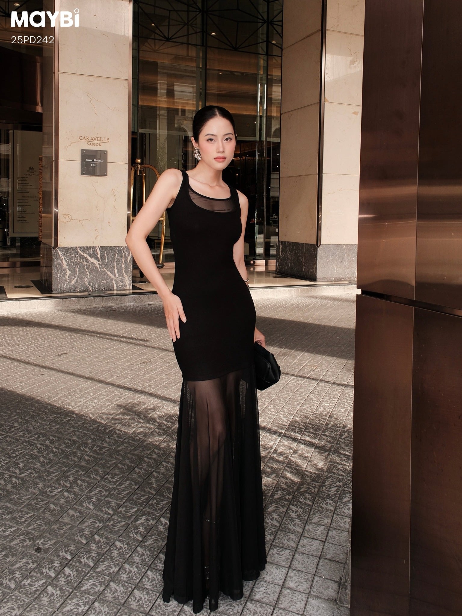 Mô tả kiểu dáng: Đầm maxi ôm body hai dây bản to, tôn đường cong quyến rũ. Thiết kế phối lưới tinh tế ở ngực và phần chân váy tạo hiệu ứng thị giác cuốn hút, vừa thanh lịch vừa gợi cảm. Phần chân váy xẻ lưới dài giúp bước đi mềm mại, uyển chuyển.