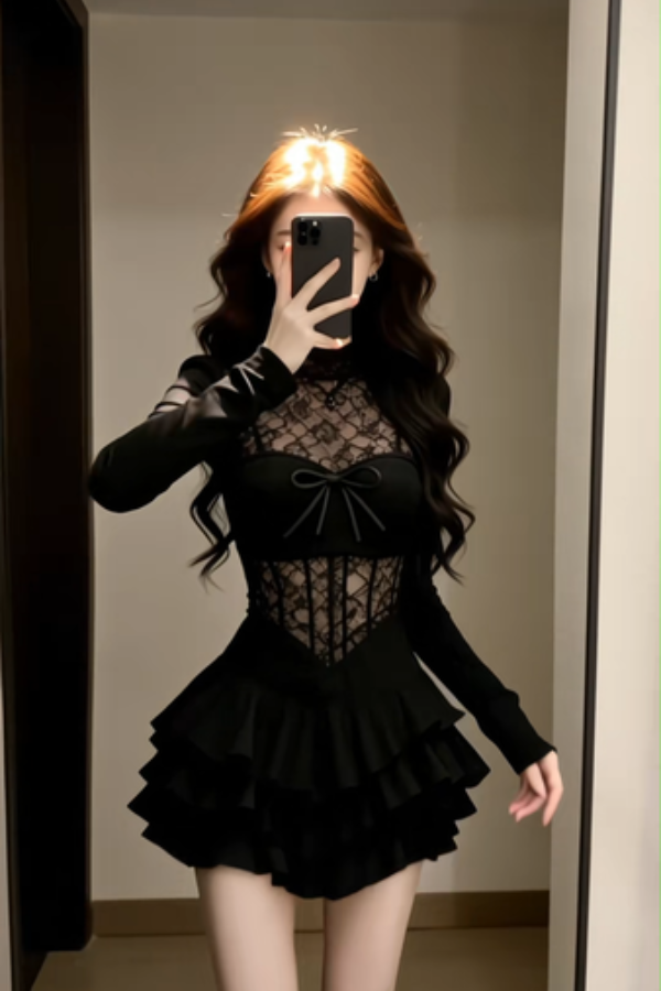 Đầm xòe dài tay phối ren dáng mini Build your style - Love yourself