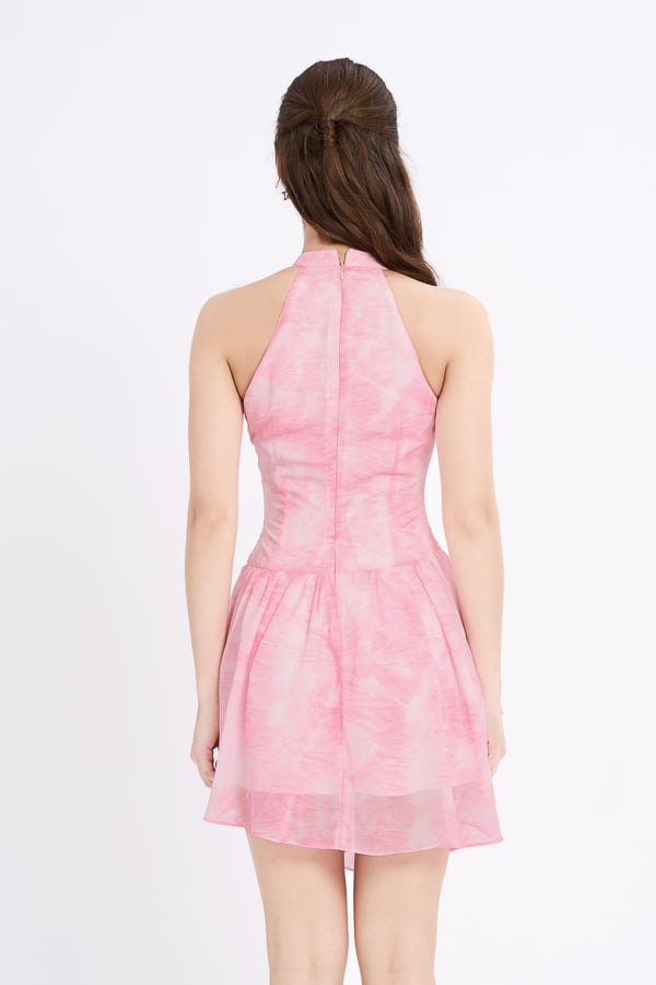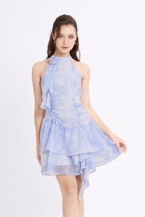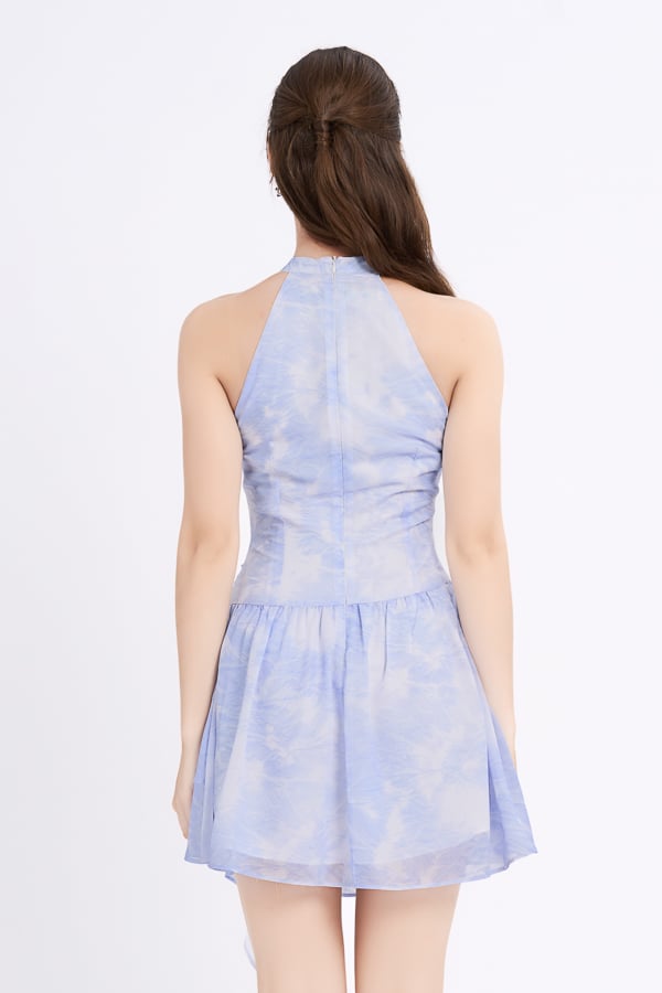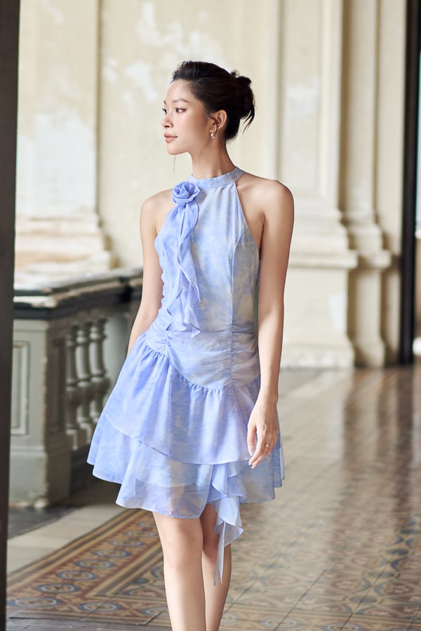 Tên sản phẩm: Đầm yếm xòe voan in họa tiết tùng bèo kiểu.