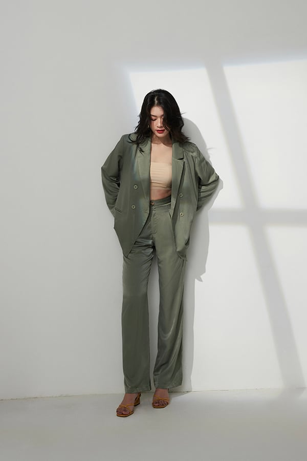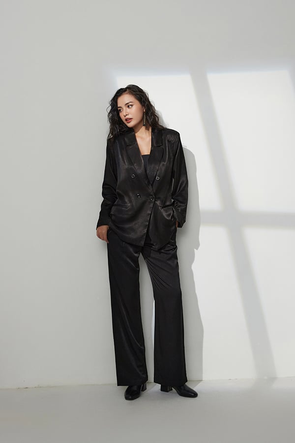 Form: Quần dài ống đứng, lưng tây, gài nút có dây kéo, túi sườn xéo.