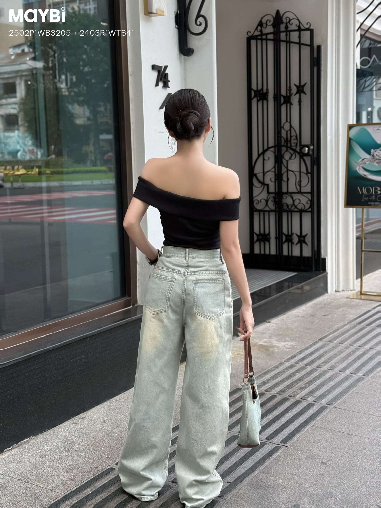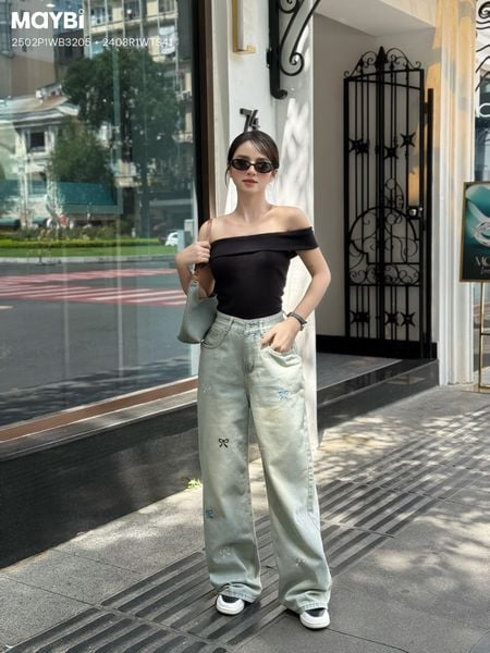 Tên sản phẩm: Quần jean ống suông phối nơ trang trí