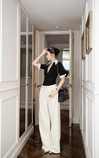 Mô tả kiểu dáng: Quần ống suông, dài, túi hàm ếch, rã may dằn chỉ