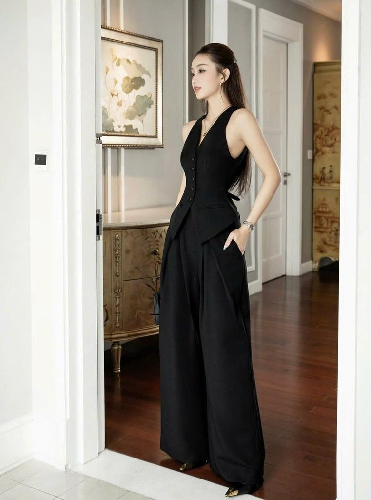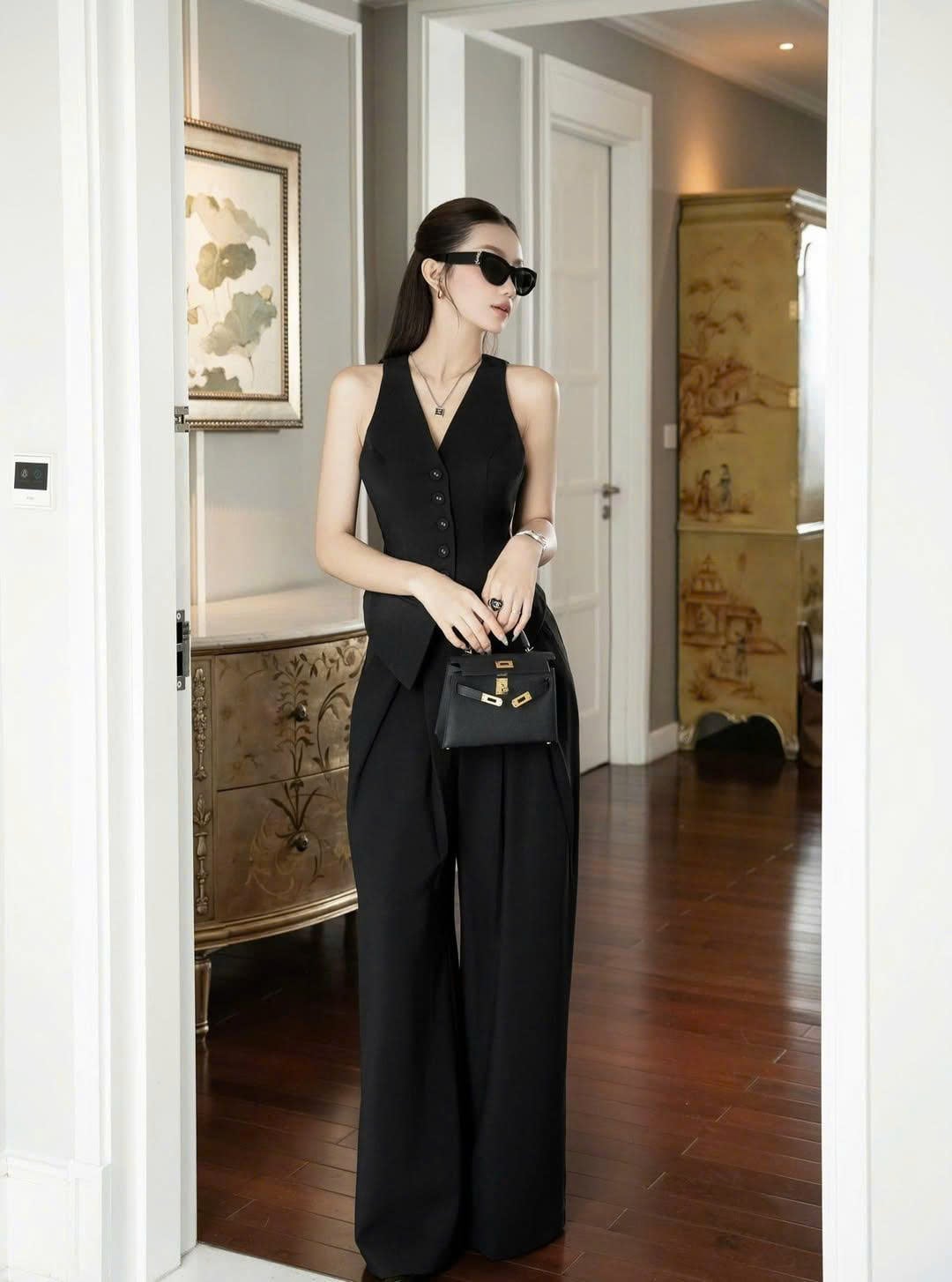 Tên sản phẩm: Set áo gile quần culottes xếp ly ống rộng