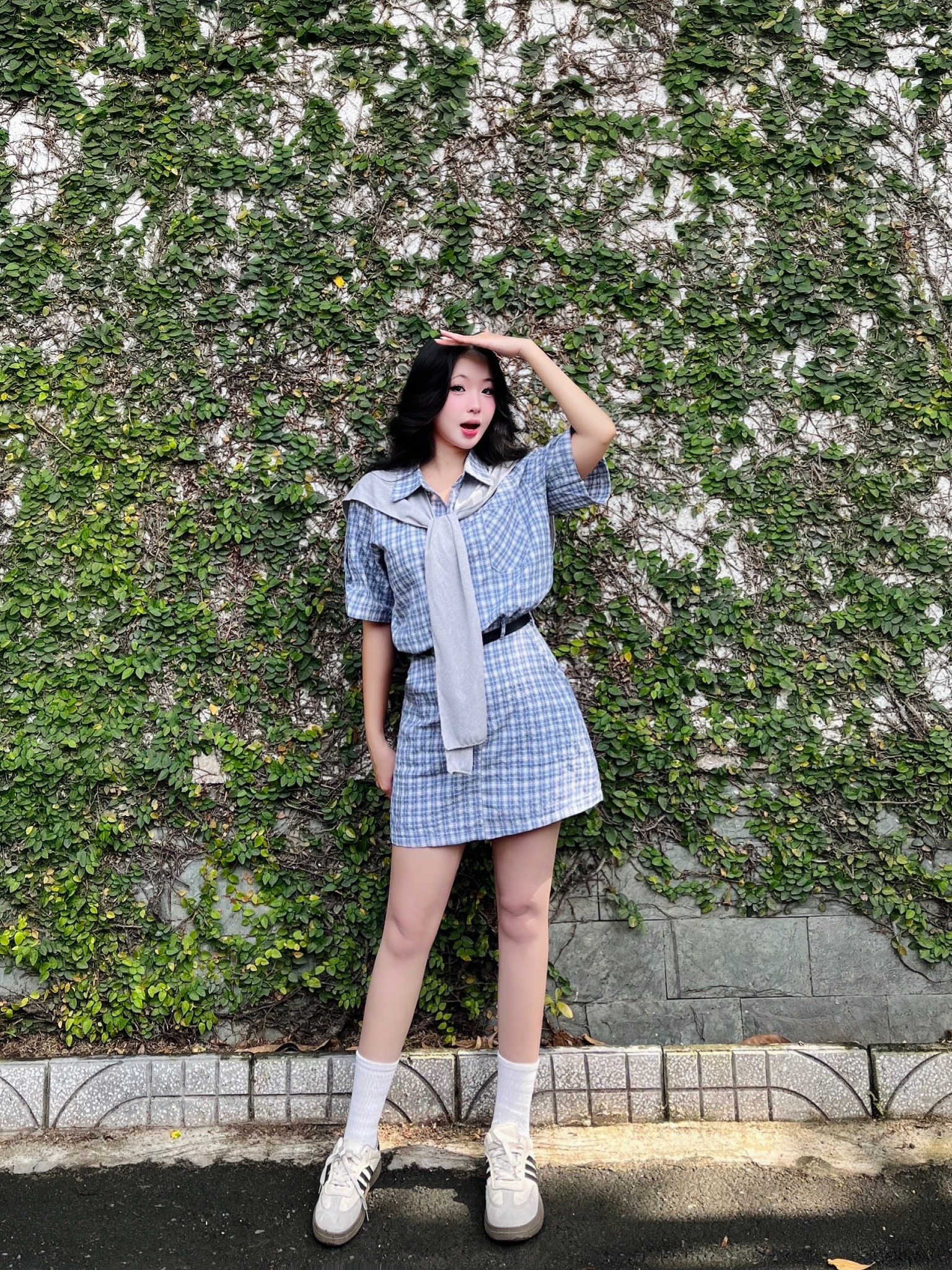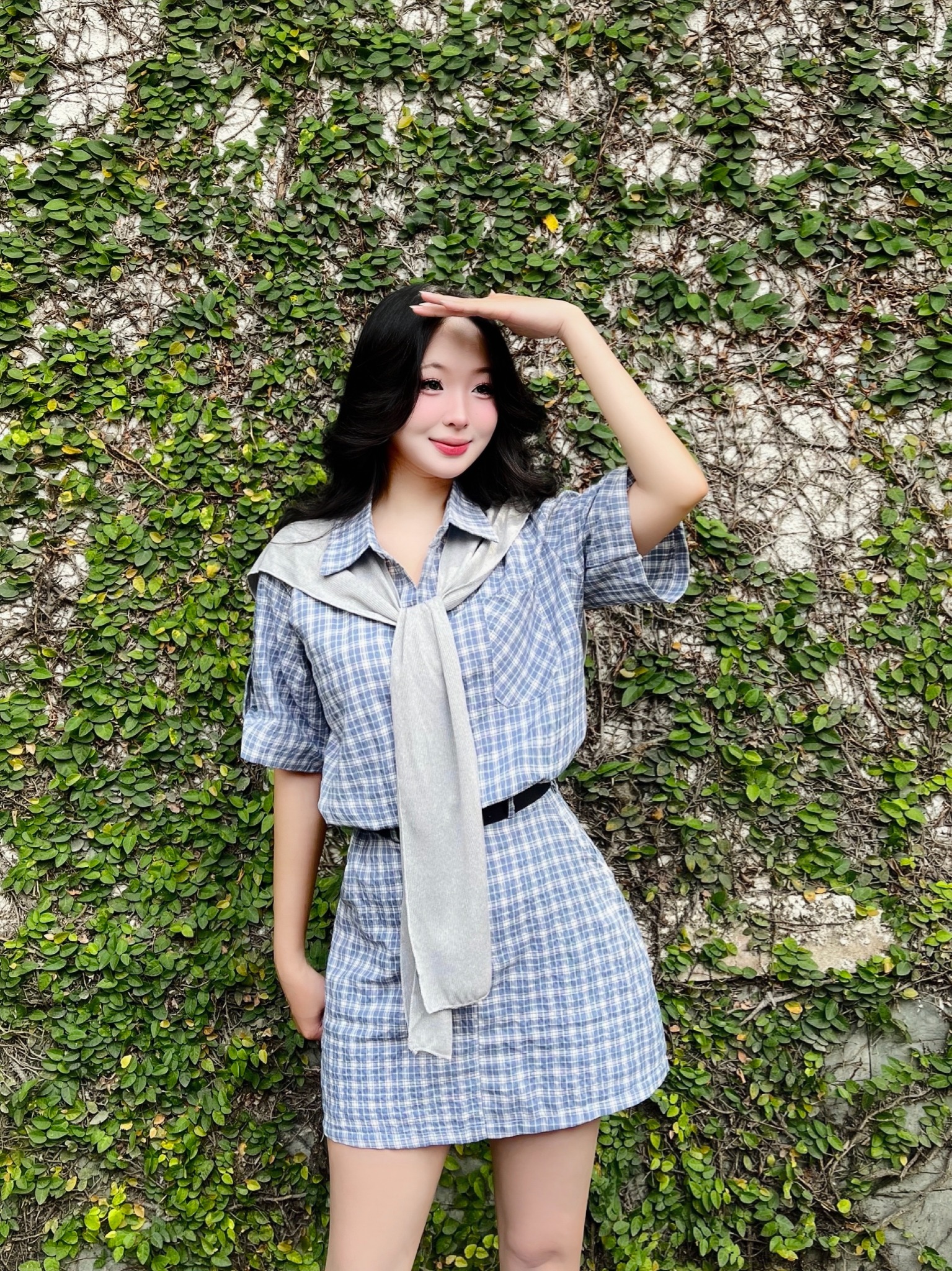Set áo sơ mi chân váy caro kèm choàng vai Build your style - Love yourself