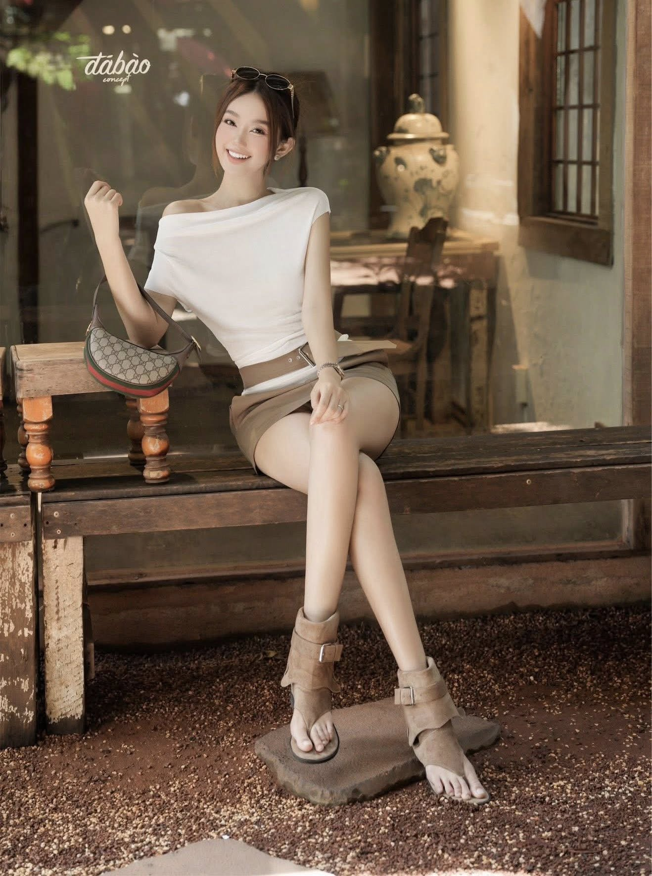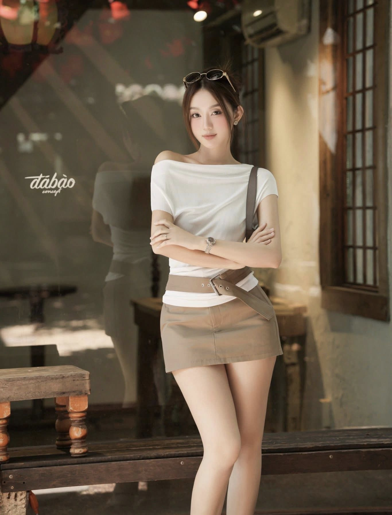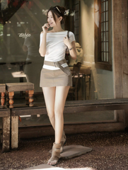 Set thun lệch vai chân váy A dáng mini Build your style - Love yourself